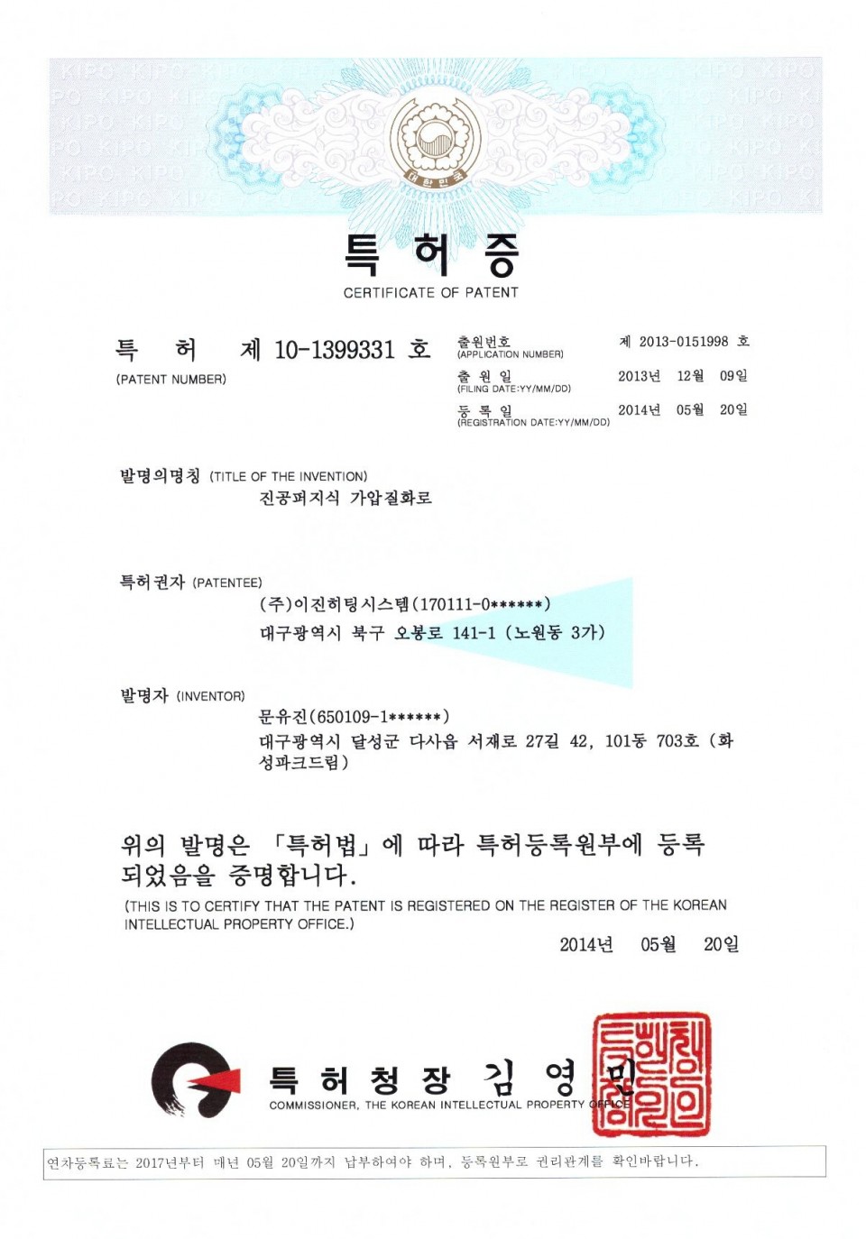 Patent Certificate